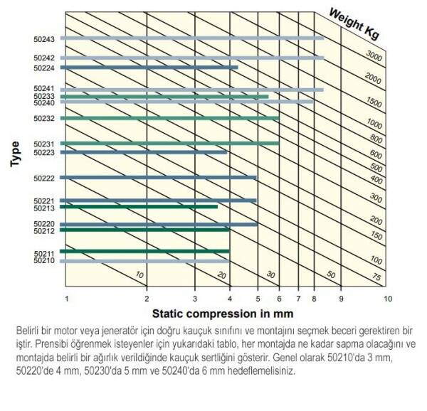 • 50210 Serisi ; Dört farklı sertlik derecesi ile her bir takoz için 60 kg’a kadar.