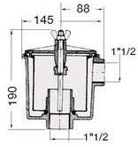 Deniz suyu filtresi, siyah möblen plastik gövdeli ve şeffaf kapaklı.RINA standardına uygun olarak üretilmiştir