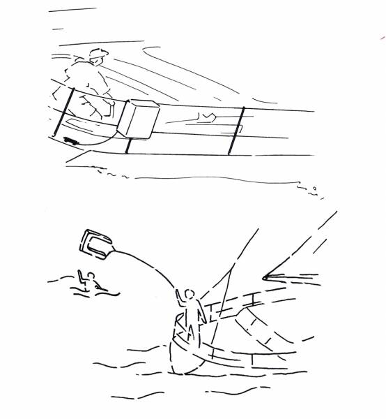 Denizden adam kurtarma sistemi. Çantası askılıdır, pulpite kolayca monte edilir. İpi batmaz.