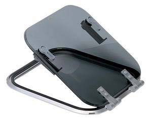 Vetus hatch. Tip Planus. Anodize alüminyum çerçevesi 75 mm köşe açılıdır. Camı 10 mm duman rengi akriliktir. İç finisyon çerçevesi ve sineklik opsiyonel ekipman olarak sunulmaktadır.