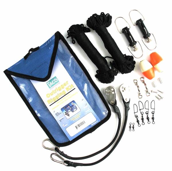 Taco Marine Outrigger donatım kiti. 670 cm boya kadar bir çift outrigger için gerekli tüm ekipmanı içerir. Siyah dakron ipi 30 metre boyundadır.