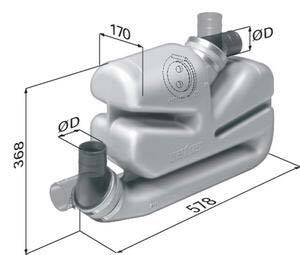 Vetus waterlock, uzun egzoz sistemleri için. Kapasite:17 L. Çek-valfli.