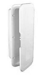 Yangın söndürücü yuvası. Kapaklı, beyaz plastik.