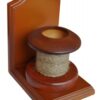 Ahşap kitap tutucu, makara figürlü. Kalemlik olarak da kullanılabilir. 11x14x17 cm.