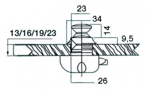 3836180 kilit için buton & halka. Delik Ø 26mm.