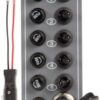 5´li çakmaklı sigorta paneli. Su geçirmez basmalı tip otomatik sigortalı. 5 swıtch´in ilki on-off-on, sonuncusu özellikle korna, vinç, ırgat gibi aletlerde kullanmak üzere bıraktığınızda off konumuna gelecek tipte tasarlanmıştır. Diğer 3 switch standart tiptedir. Her switch max. 15A. Ölçüler:170×90 mm.