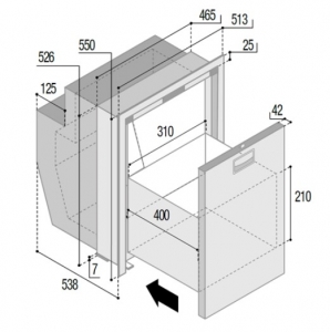 12/24V DC. Çekmeceli Model. Paslanmaz çelik kapı ve çerçeveli.