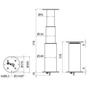 3 kademeli elektrikli yuvarlak masa ayağı. Gümüş eloksallı alüminyumdan, tekne içinde ve dışında kullanım için, dönme önleyici sistemli. Tek ayaklı çalışma için 1436203 (On)-Off-(On) çift kutuplu anahtar gereklidir. Senkronize çift ayak çalışması için kontrol ünitesi/alıcısı sipariş edilmelidir.