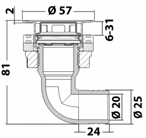 Paslanmaz çelik kafalı gömme su gideri. Güçlendirilmiş asetal fiberden yapılmış gövde. AISI 316 paslanmaz çelik kafa ve çıkarılabilir filtre. Hortum Ø 25 mm.