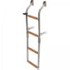 Katlanır merdiven. Basamaklar iroko, diğer aksam paslanmaz çeliktir. Eni: 28 cm´dir.