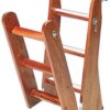 Katlanır merdiven, vernikli ahşap. Basamaklar kaymaz bant ile kaplanmıştır. Montaj ekipmanları sarı üzeri kromajdır.