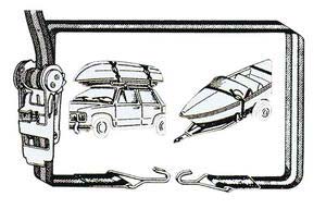 Kayışlı gergi. Kayış güçlendirilmiş polyester, gergi mekanizması ve kanca paslanmaz çeliktir.