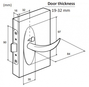 Mobella normal (menteşeli tip) kapı kilidi. Model Compact. 19-32mm kalınlığında, sağ veya soll açılımlı her türlü iç mekan kapıda kullanılabilir,gerektiğinde dışarıdan müd