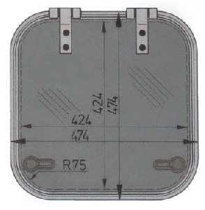 Vetus hatch. Tip Planus. Anodize alüminyum çerçevesi 75 mm köşe açılıdır. Camı 10 mm duman rengi akriliktir. İç finisyon çerçevesi ve sineklik opsiy