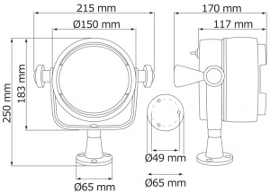 Braketten çıkarılarak el projektörü olarak da kullanılabilir. 600 metreye kadar görüş mesafesi vardır. On-off switch su geçirmezdir. Projektör çapı 150 mm´dir.