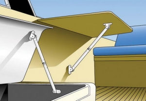 Southco Click kapak tutucu. Her iki tarafı taban braketli. Masa, navigasyon tablası, buz kutusu ve benzerlerinin kapaklarını, tablalarını açık tutmak için tasarlanmıştır. Katlandığında s