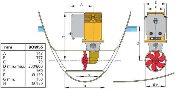 Vetus baş manevra pervanesi, 55 kgf, 12V