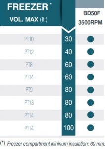 - Evaporatör modeli PT3. Önerilen kapasite (litre): 80. BD35 – 2500 RPM